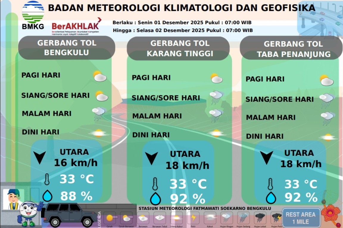 PRAKIRAAN CUACA JALUR TOL BENGKULU-TABA PENANJUNG