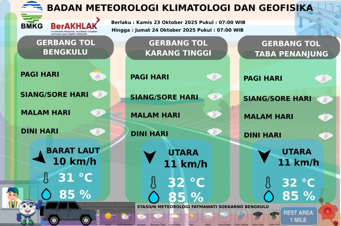 PRAKIRAAN CUACA JALUR TOL BENGKULU-TABA PENANJUNG